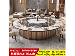 樂藝家具酒店電動餐桌大圓桌,20人岩板轉盤火鍋桌,30人會所別墅大飯店餐桌圓桌